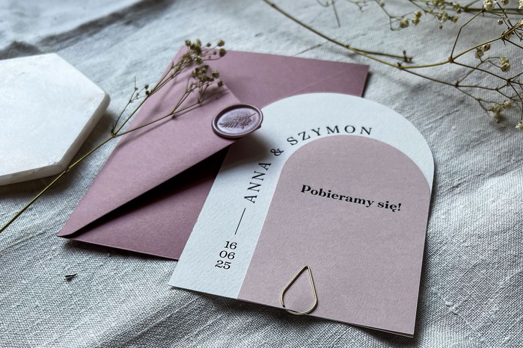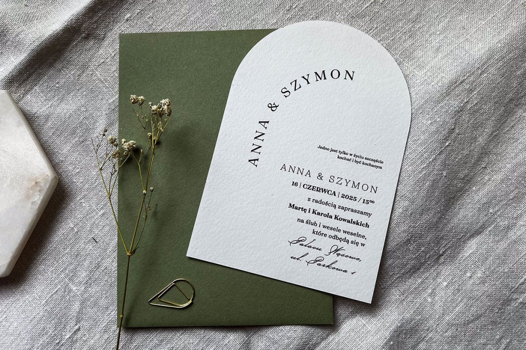 Kreatywne formaty i kształty zaproszeń ślubnych to doskonały sposób na wyróżnienie się i zachwycenie swoich gości. Geometryczne zaproszenia, modne zaproszenia półokrągłe, okrągłe, w kształcie elipsy, dwustronne oraz te z zaokrąglonymi tylko z jednej strony – możliwości są niemal nieograniczone. Wybierając nietypowe zaproszenia, pamiętajcie, aby były one spójne z charakterem Waszej ceremonii i odzwierciedlały Waszą osobowość. Dzięki temu zaproszenia staną się nie tylko informacją o dacie i miejscu ślubu, ale także pięknym, personalizowanym dziełem sztuki, które zostanie na długo w pamięci Waszych gości.