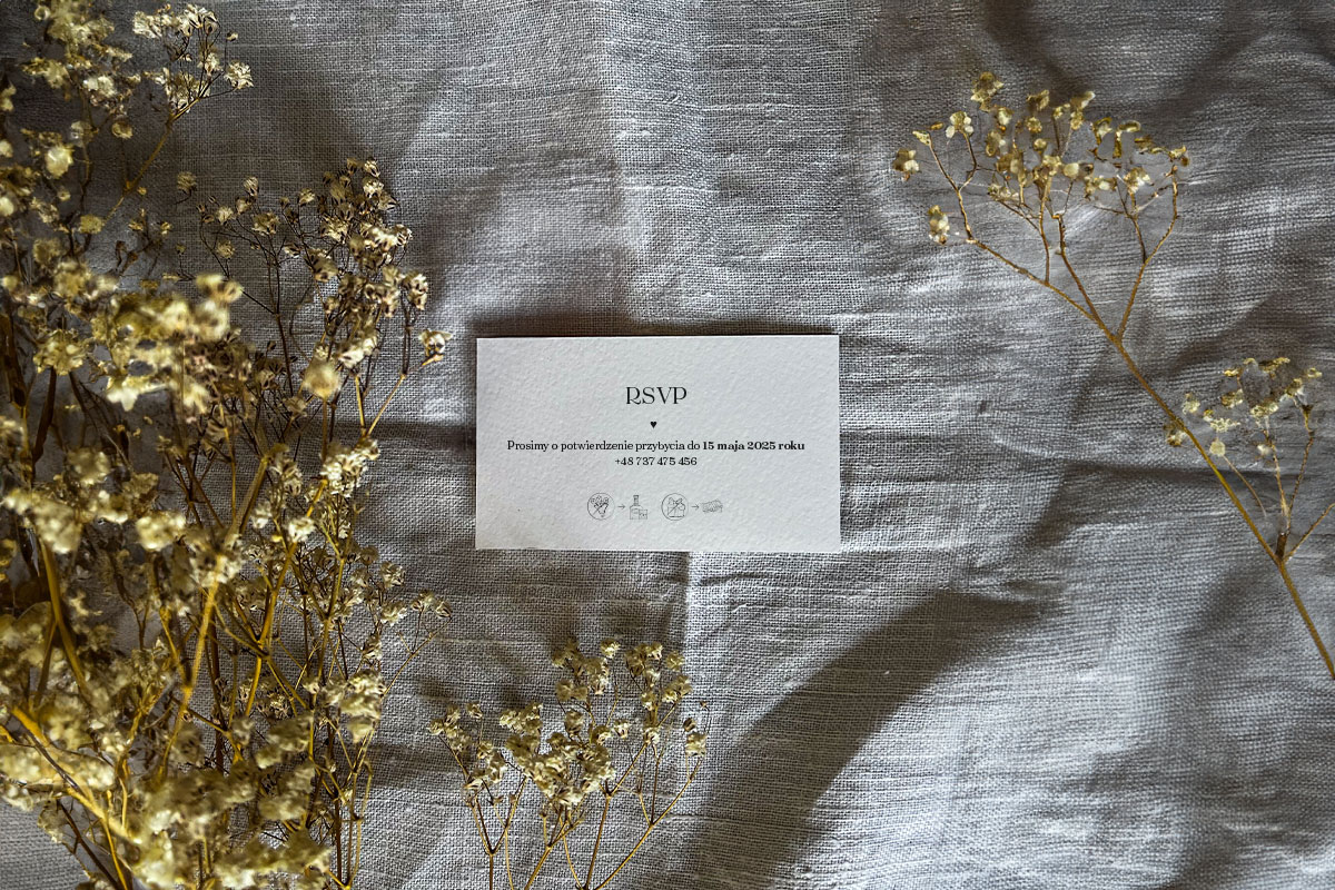 Tu znajdziesz elementy, które urozmaicą Twoje wesele, jak kartki RSVP, które możesz dodać do zaproszeń czy woskowe laki. Sprawdź też moje karteczki prezentowe, jeśli masz pomysł na prezent dla gości, a chcesz zachować spójność z resztą papeterii. Znajdziesz tu także kolory kopert, papeterii czy dostępne kolory wstążek.