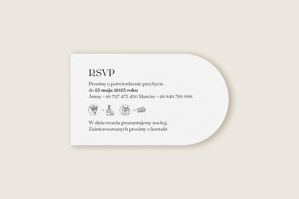 Karteczka RSVP z rebusem – jednostronnie zaokrąglona